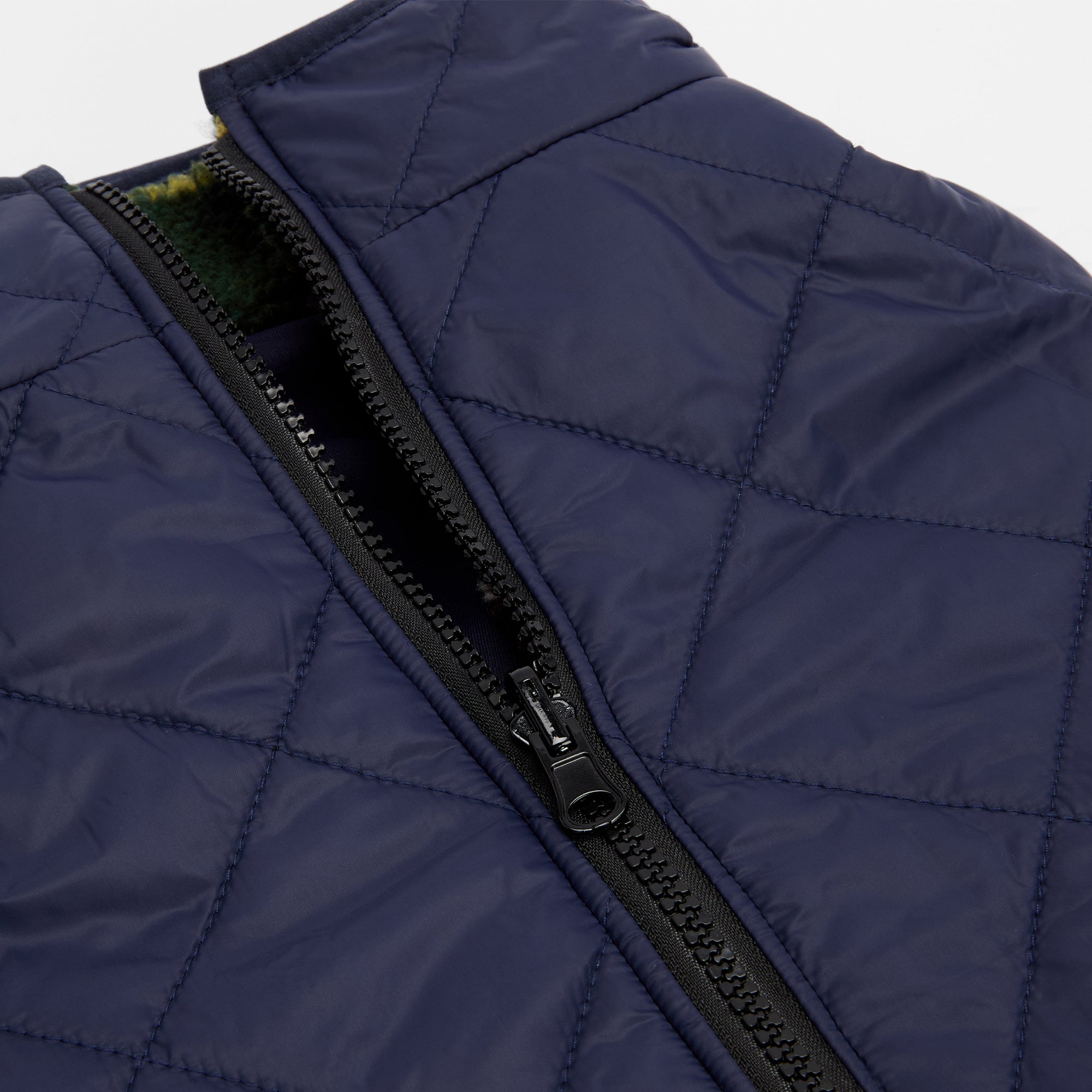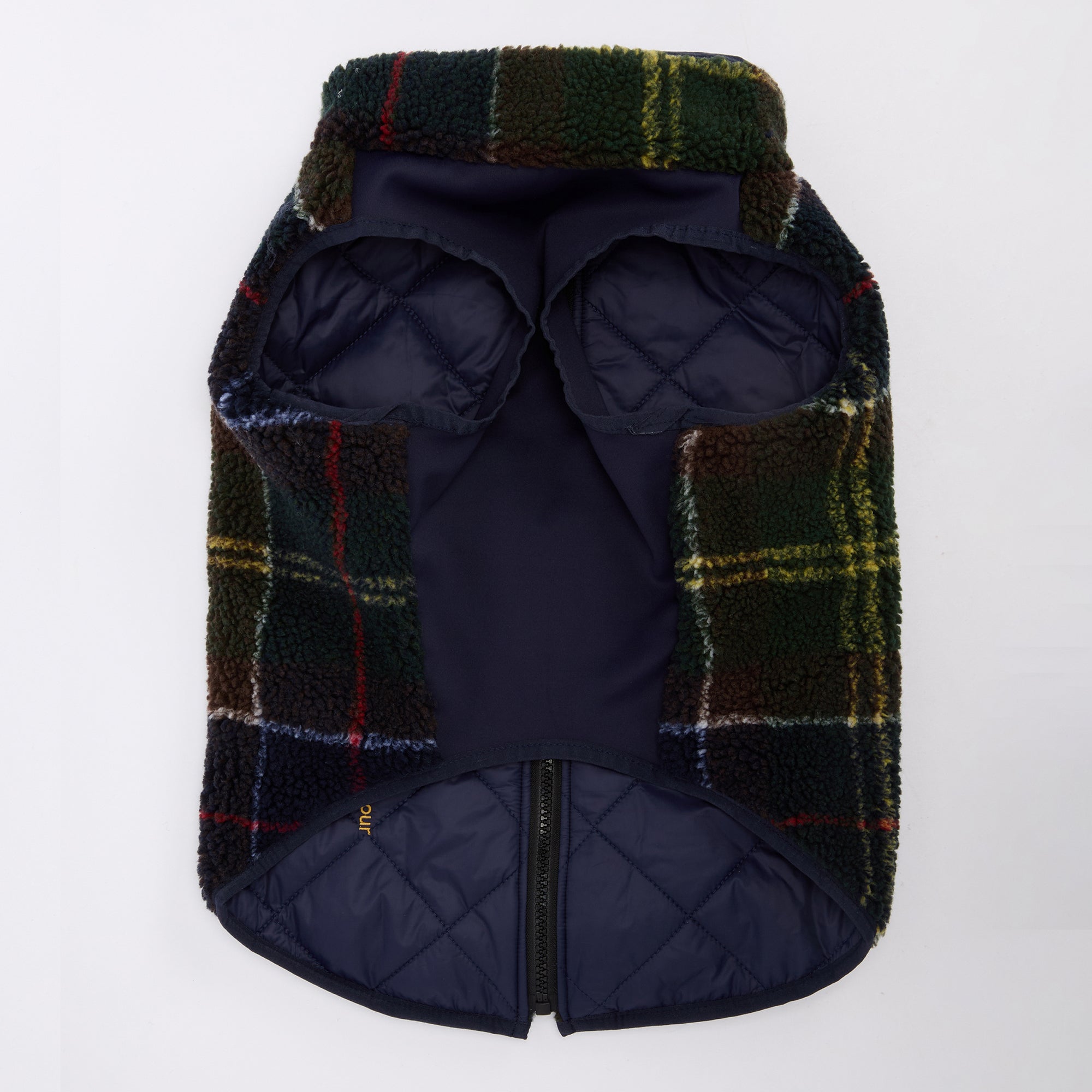 The Barbour Field Reversible Dog Coat boasts a 2-in-1 design with a chunky zip fastening over the back for ease. This reversible dog coat features classic tartan fleecing to one side and classic quilt to the other, complete with a stretch fabric panel to the front for optimal comfort and easy wear for your little pup.