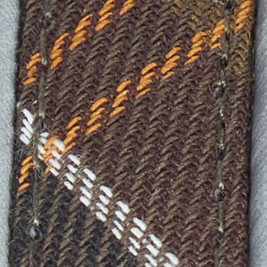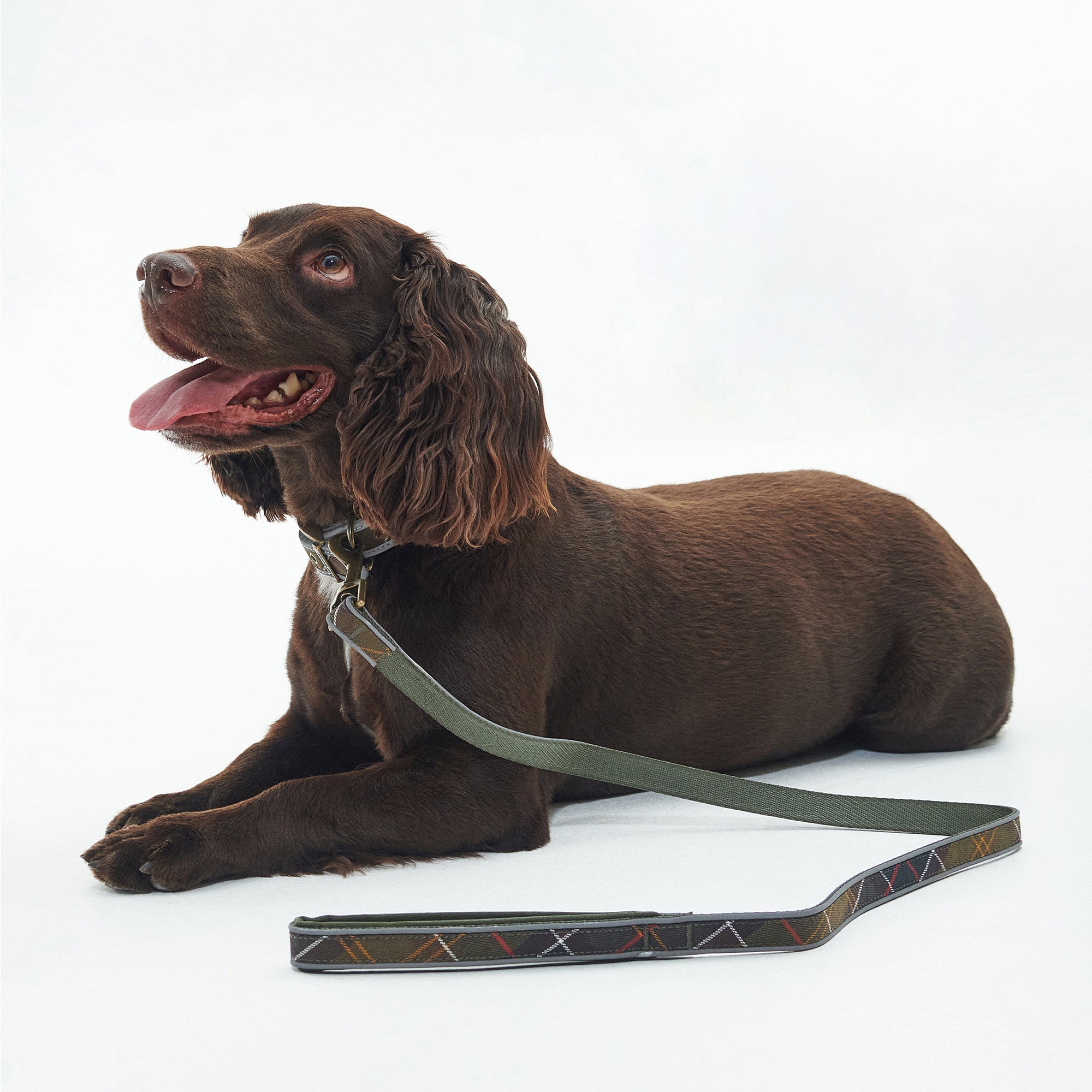 This tartan webbing dog lead features reflective binding at the edges to keep your dog safe when the days get shorter. It's got a loop handle and an aged brass clip to secure it to your dogs collar.