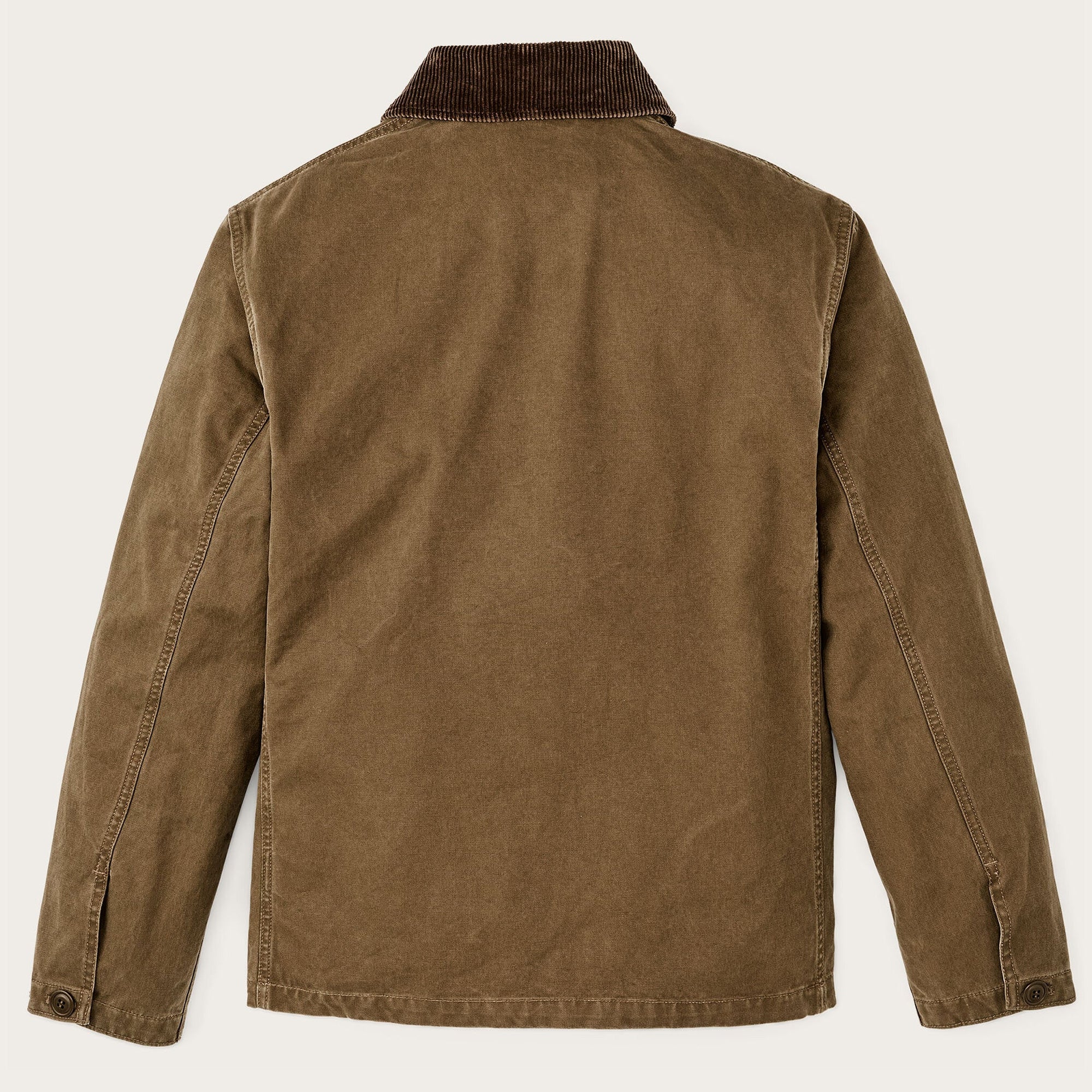 The hand pockets double as flaps for the cargo pockets, a design taken from Filson's vintage field coats. Corduroy-lined collar.
