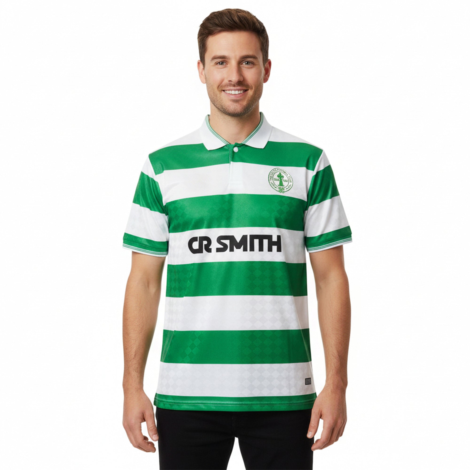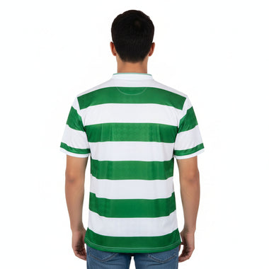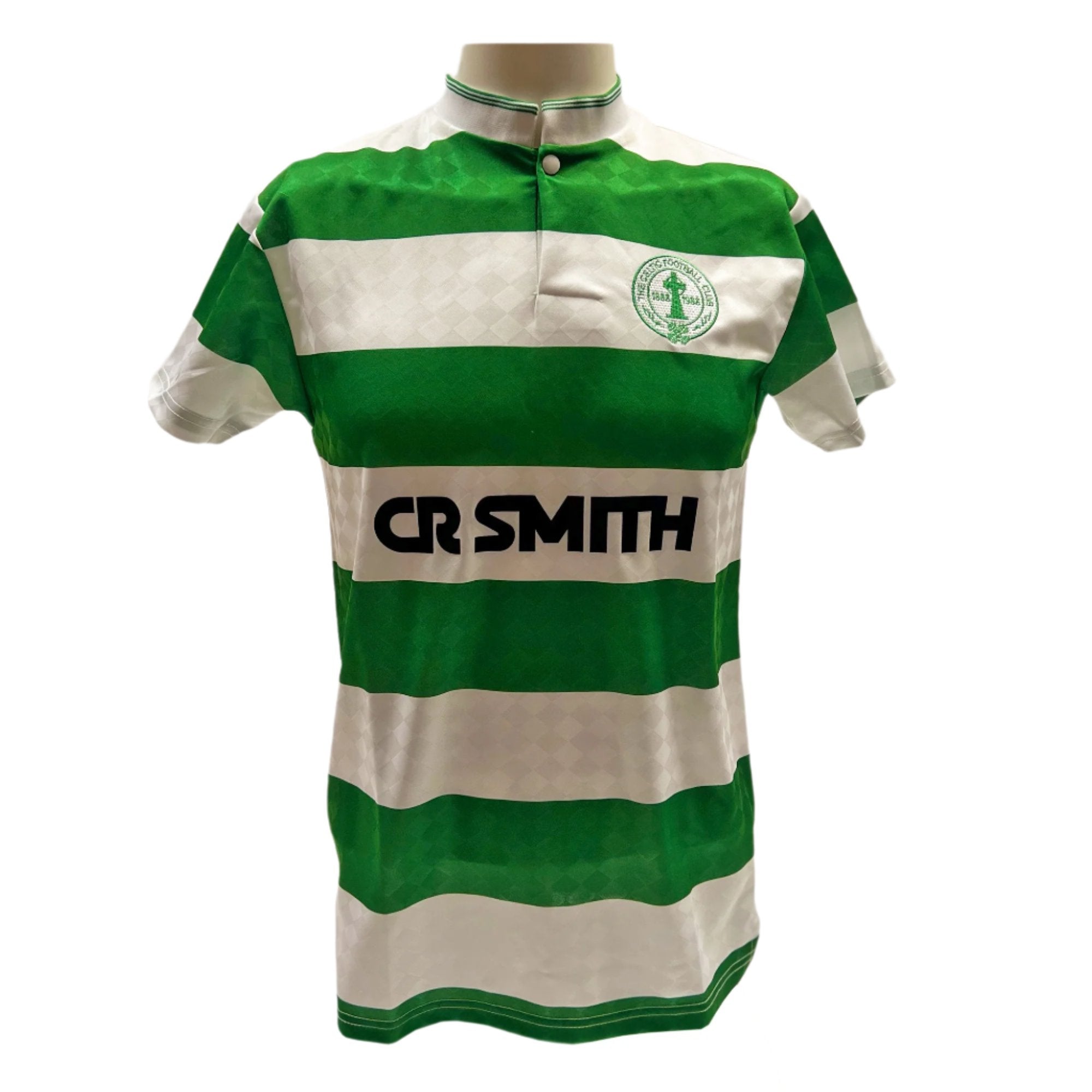 Expertly crafted with 100% polyester, the Celtic 1988 Centenary Retro shirt boasts a button-up collar and an embroidered Celtic badge. The flock printed sponsor adds a touch of depth and nostalgia to this classic design. Elevate your game with this authentic piece of Celtic history.