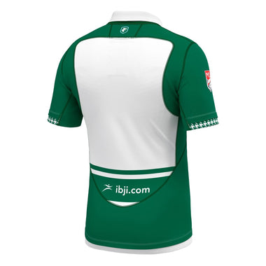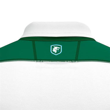 The iconic white and green horizontal bands alternate on a deep base, recalling the visual identity that has accompanied the team since the beginning. The polo collar with buttons, together with the regular fit, offers timeless elegance, while the contrasting side inserts streamline the structure of the garment.