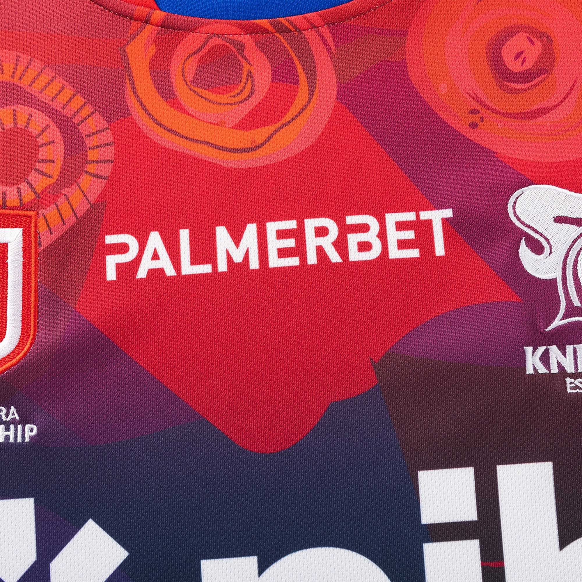 Celebrate heritage and unity with the Knights Indigenous 2025 Rugby Shirt, featuring artwork by Renae Lamb, a proud Wiradjuri/Wongaibon artist and founder of Midnight Dreaming.