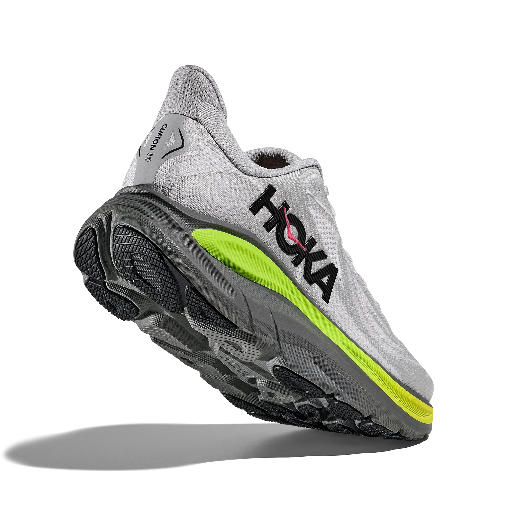 The Clifton 10 features a higher bed of soft cushion, designed to provide a forgiving impact and ride.