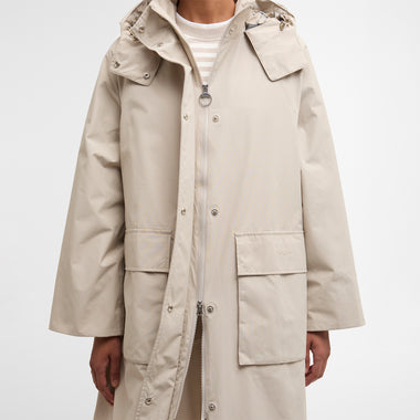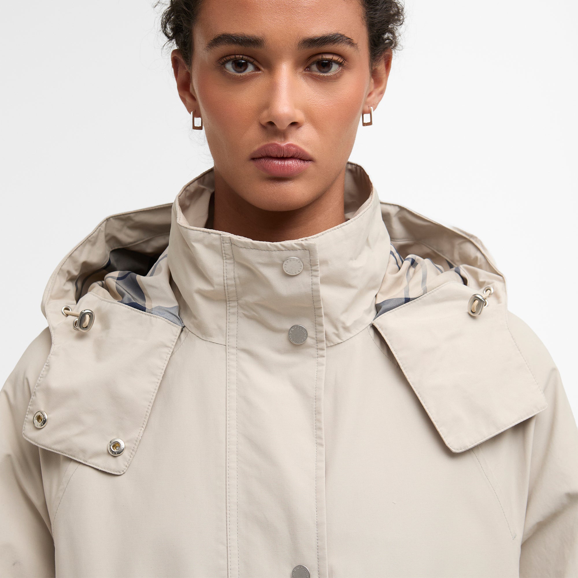 The Barbour Devlin Waterproof Jacket is a modern, weather-ready essential. Featuring a funnel neck with a fixed hood, it offers lightweight waterproof and breathable protection. Oversized bellows pockets provide practical storage, while studded side vent details enhance mobility and style. Finished with a seasonal tartan bias binding to the inner back neck, this jacket combines contemporary design with signature Barbour heritage, making it ideal for all-weather wear with a refined, functional edge.