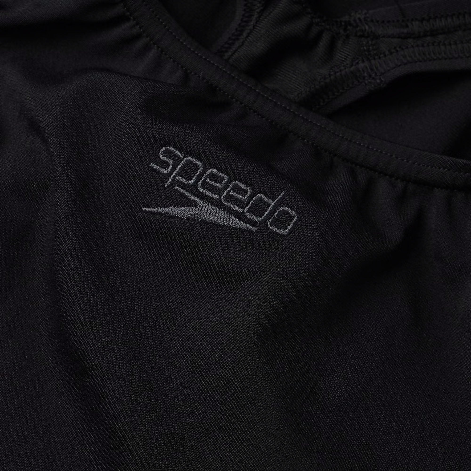 Speedo's classic medalist swimsuit, updated. We’ve updated the fabric of our much-loved navy Endurance+ Medalist swimsuit. Retaining the same cut and fit you love, with great shoulder movement and flexibility, it’s now made from our durable ECO Endurance+ fabric. Quick to dry and 100% chlorine resistant, it’s ideal for regular training sessions. Plus, one of the yarns in the fabric is made from 100% post-consumer waste, such as recycled plastic bottles.