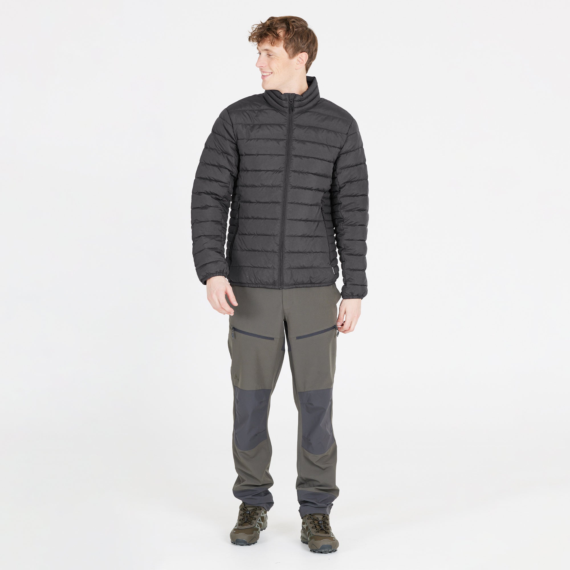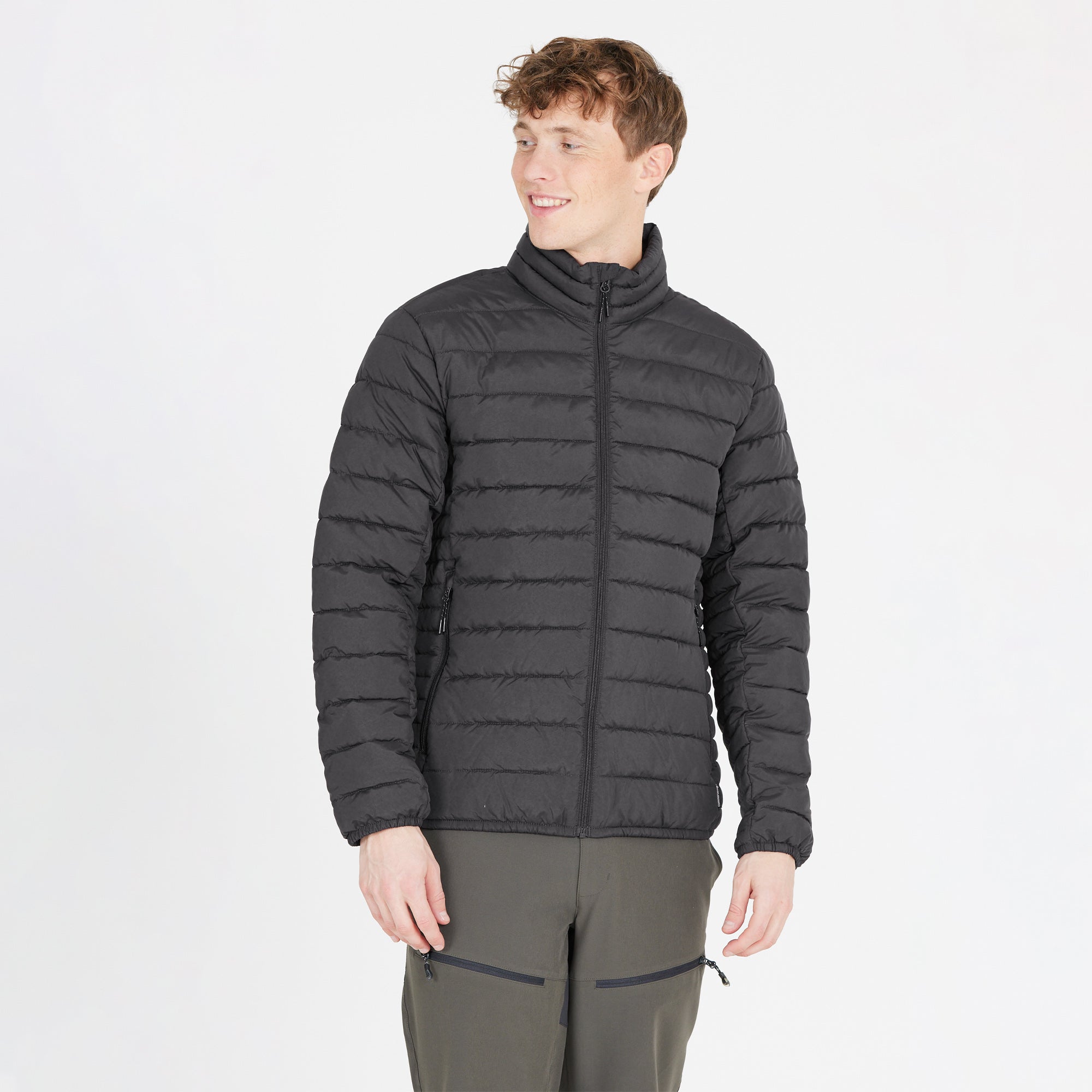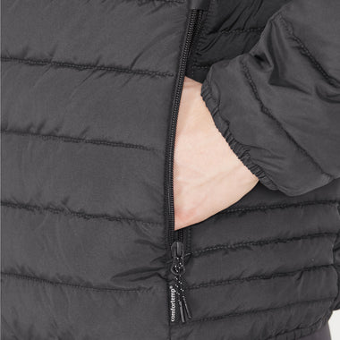 The lightweight "Edge" quilted jacket for men is functional, stylish and pleasantly warm. It is made of durable polyester on the outside and padded with a heat-insulating Comfortemp padding. It is breathable and lightweight. It has a YKK zipper and is provided with a water-repellent coating. The cuffs and hem are elastic.