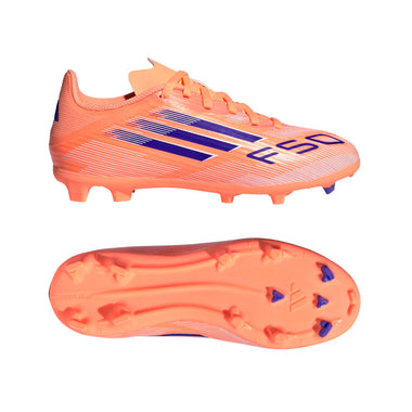 Feel the rush in adidas F50 boots engineered for speed. Standing out with an eye-catching Sprintgrid print, the Fiberskin upper on these juniors' League football boots employs a perforated tongue for cool play. A lightweight Sprintplate outsole delivers serious pace on multiple surfaces.