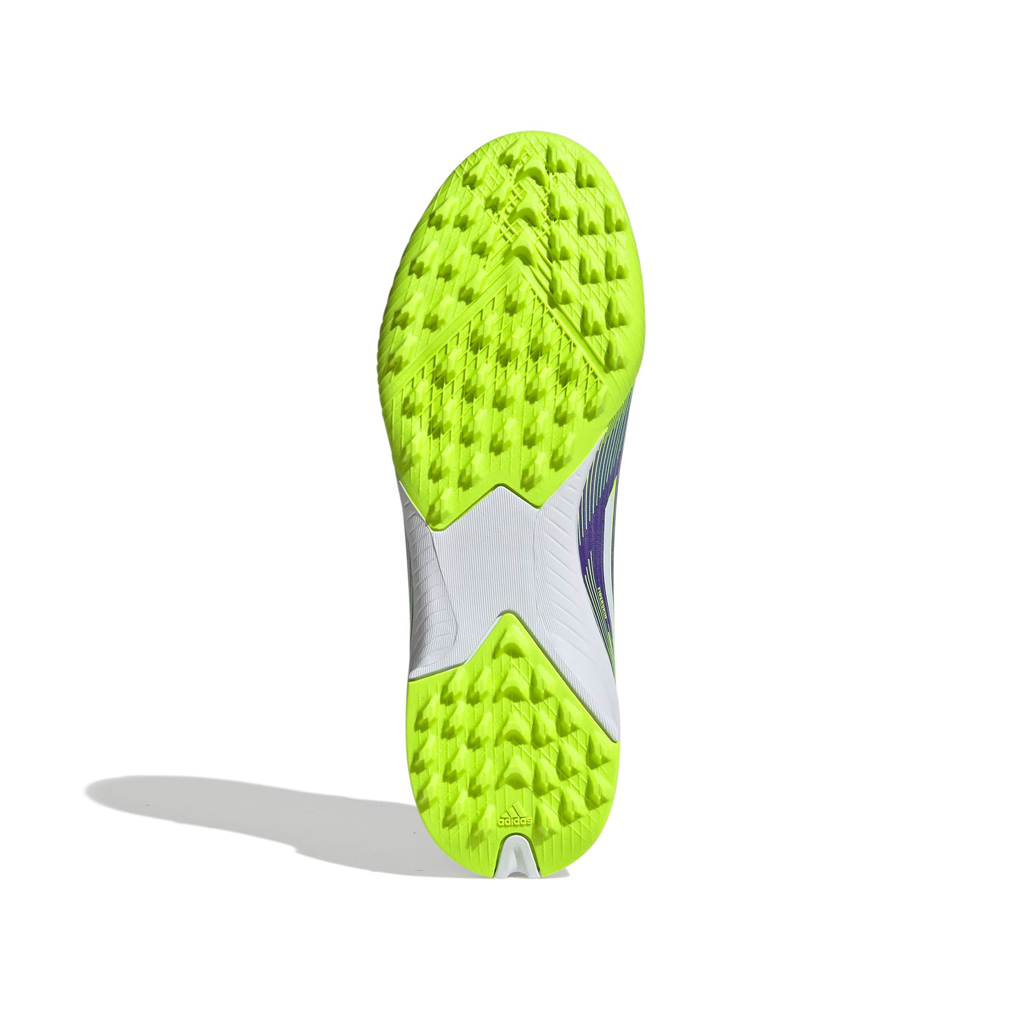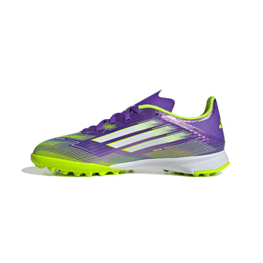 Feel the rush in adidas F50 boots engineered for speed. Standing out with an eye-catching Sprintgrid print, the Fiberskin upper on these juniors' League football boots employs a perforated tongue for cool play. A lug rubber outsole offers pace on artificial turf surfaces.