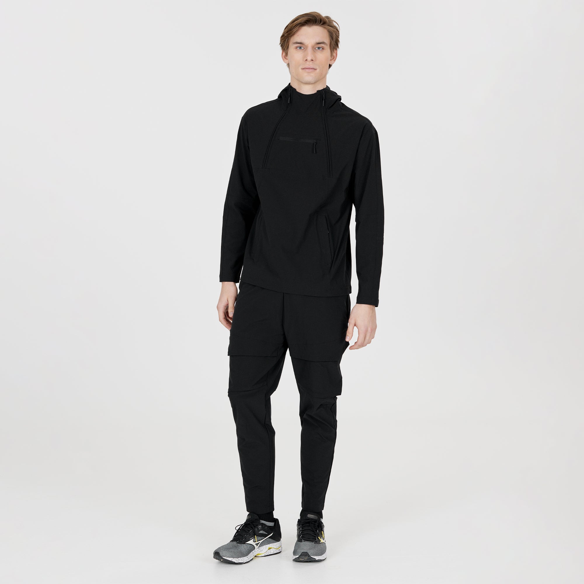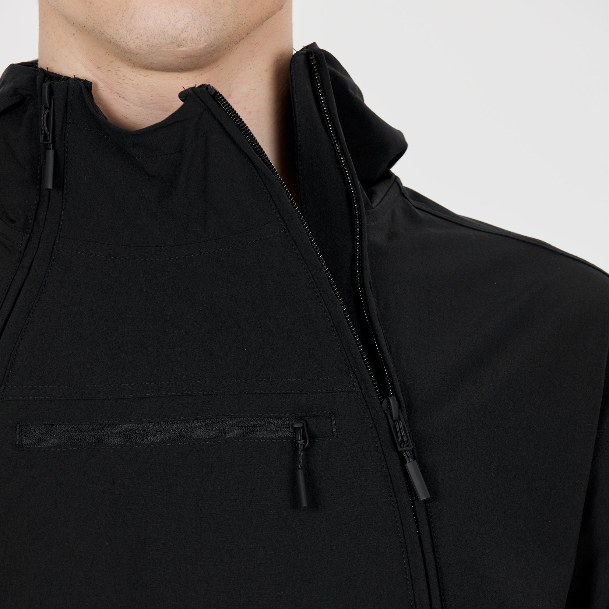 Designed with two chest zippers for easy access, side pockets, and a secure zippered chest pocket, it combines functionality with style. Crafted from breathable 4-way stretch fabric, this jacket offers superior comfort and a perfect fit.