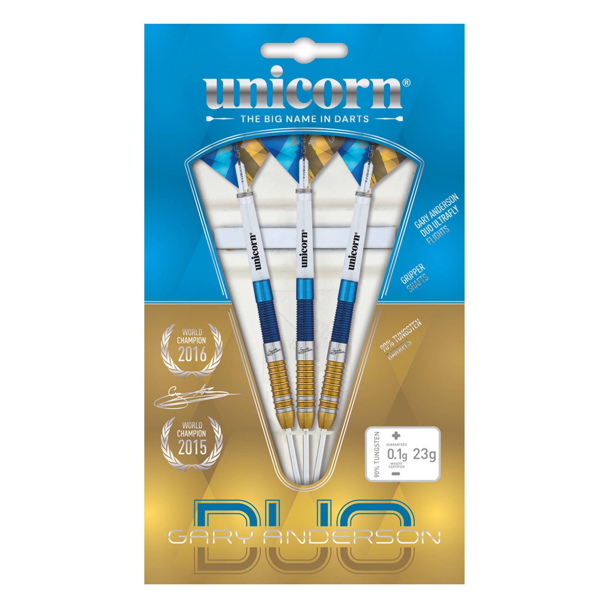 This set of darts comes with the stunning new Duo Ultrafly flights, gripper shafts and Unicorn's Epic Soft Tips.
