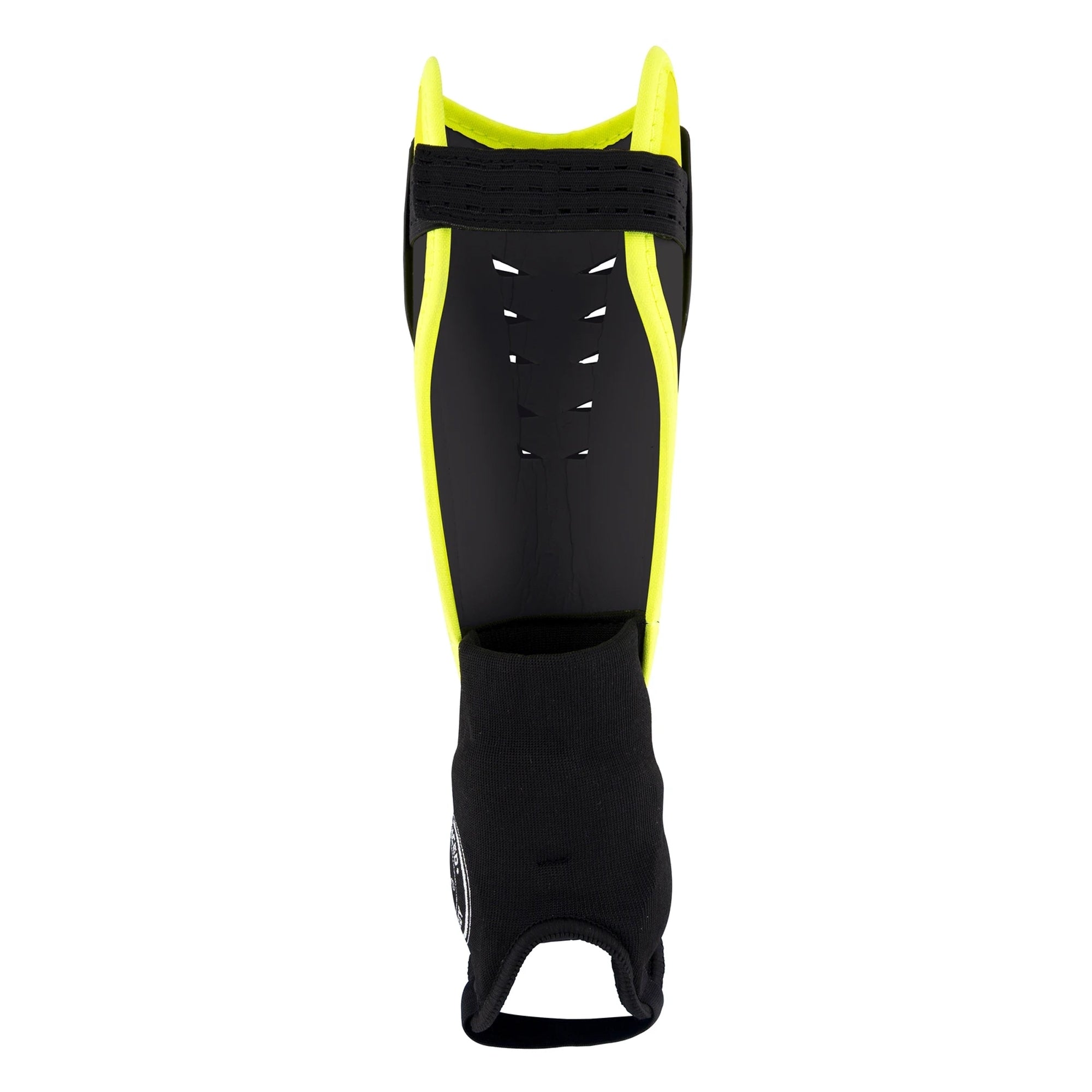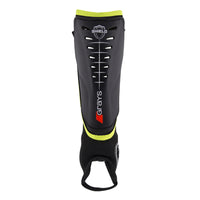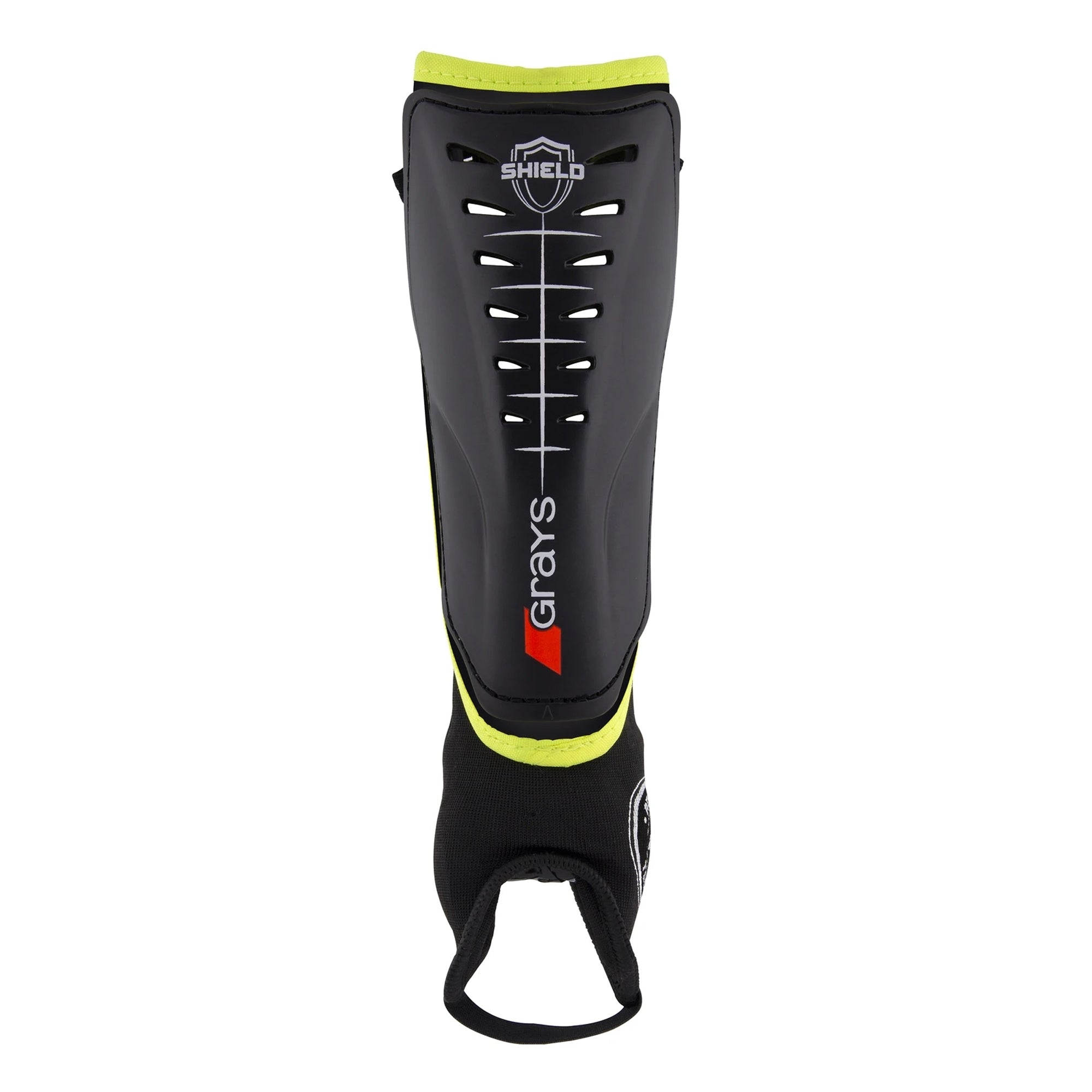 The Grays Shield hockey shinguard is designed in a 'football-style' and features a durable plastic shell that can withstand high impact hits. The interior boasts high-density foam lining to provide cushioning and the ankle disks and achilles padding provide additional safeguarding. This makes it the perfect choice for young club or school players in need of protection and comfort.