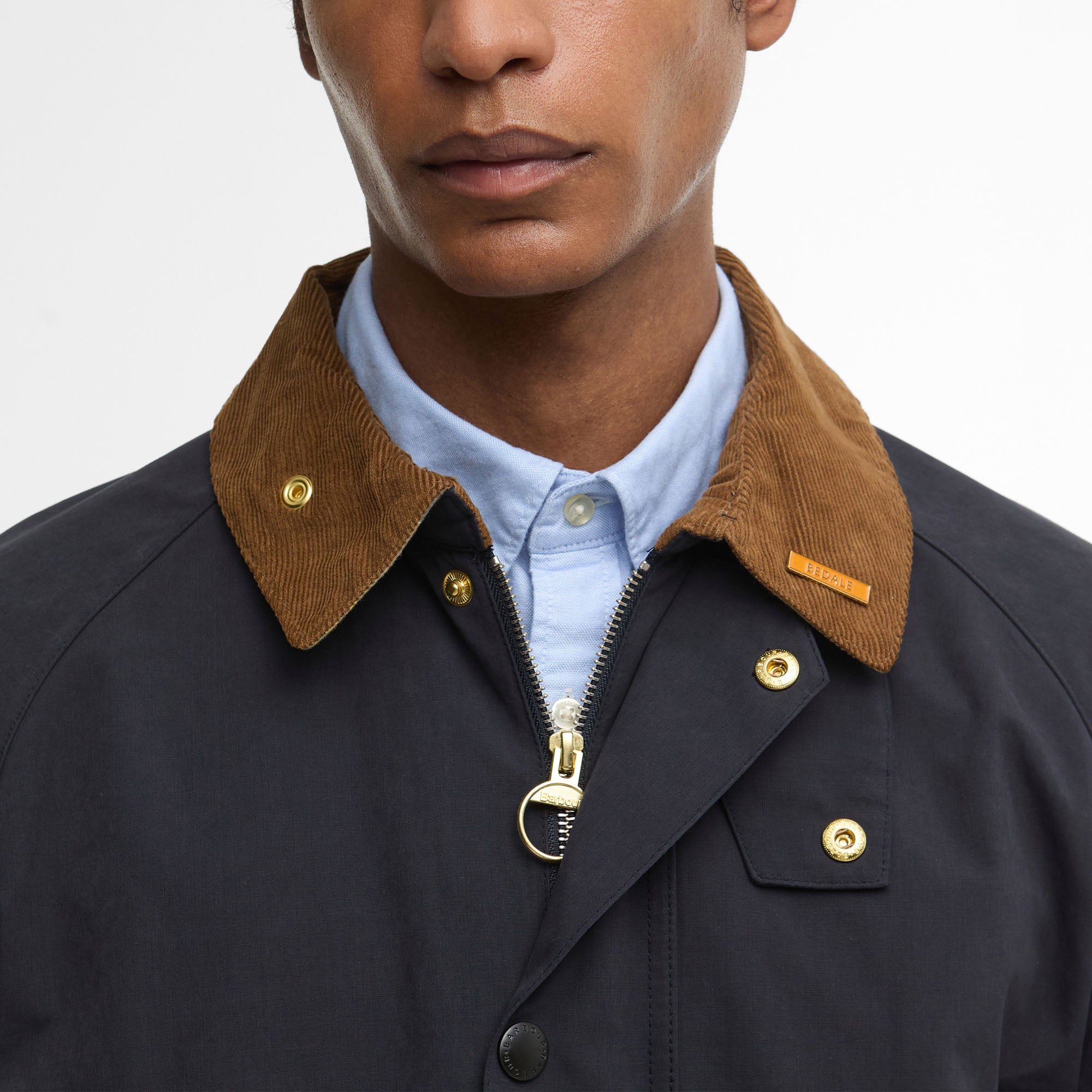 Barbour embroidery to the wearers left pocket. Jacket name pin badge to the collar.