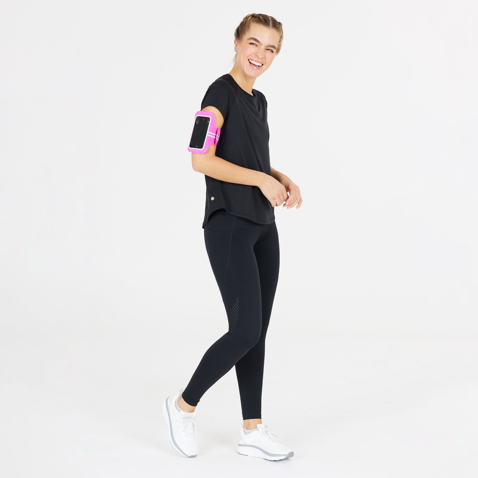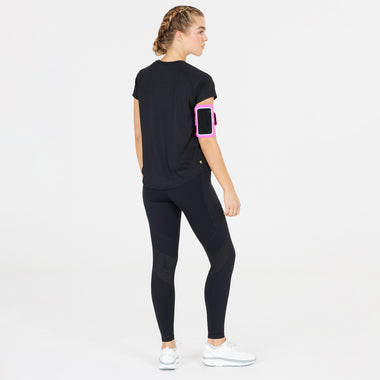The bag is easily attached to your upper arm and can be adjusted in size. In addition, the cell phone bag is reflective and helps to ensure that you are visible in different lighting conditions. It is made of 75% polyamide, 15% elastane and 10% PVC.