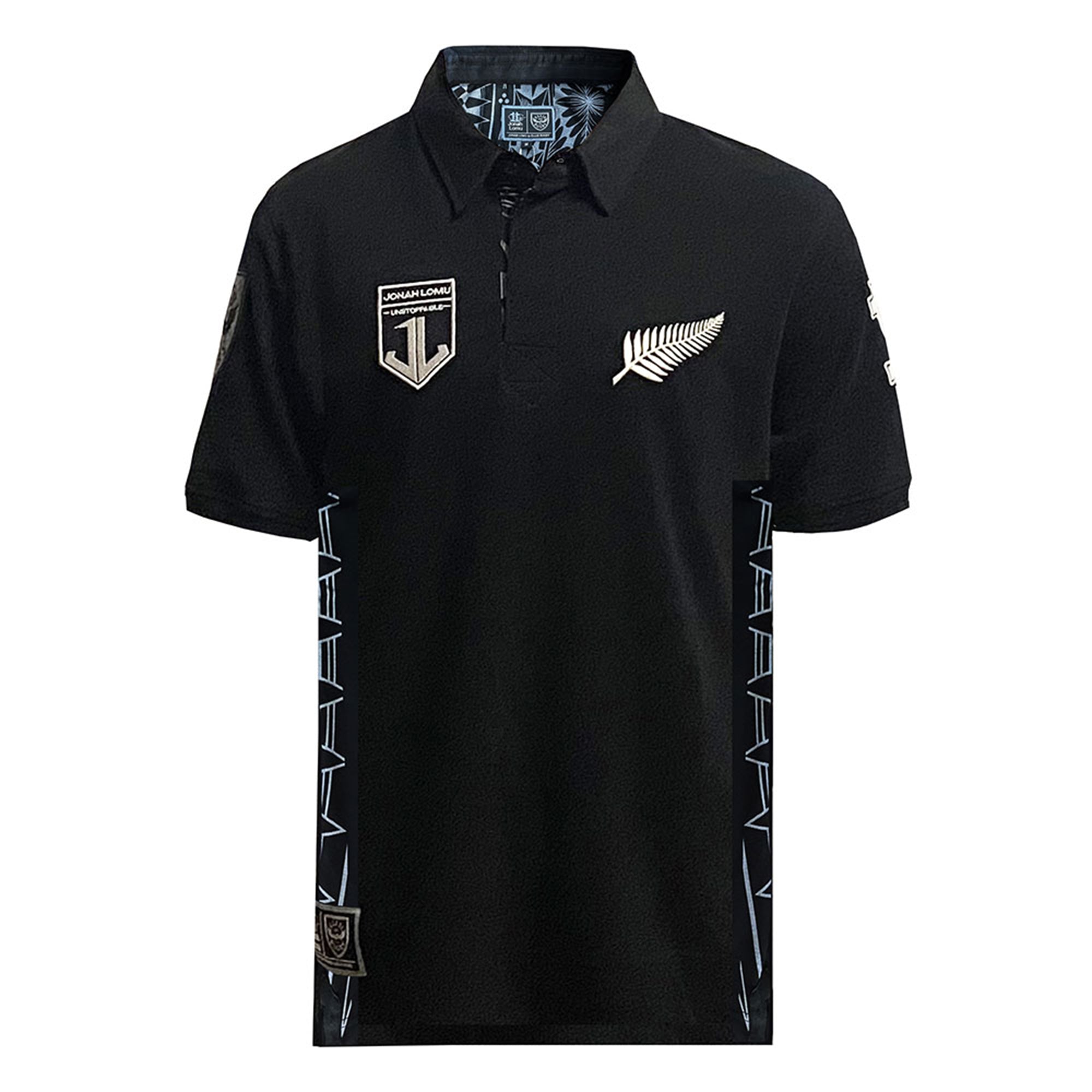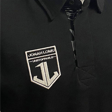 Inspired by Jonah Lomu’s legendary performances in the 1999 Rugby World Cup, this all black polo features a striking Tongan heritage pattern along the side.