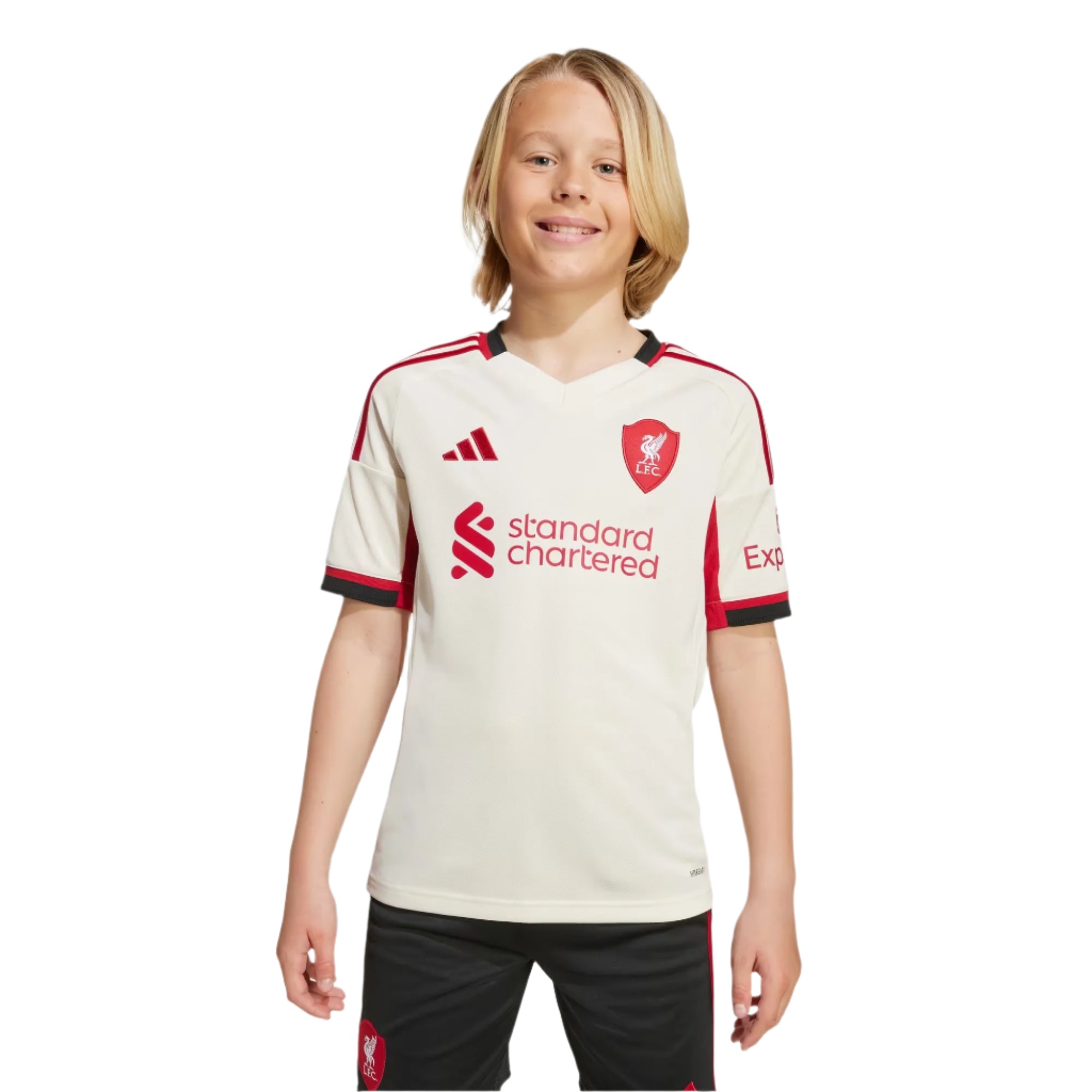 Moisture-managing AEROREADY and soft fabric combine to keep travelling fans comfortable. The off-white shade will be familiar to Reds who know their history.