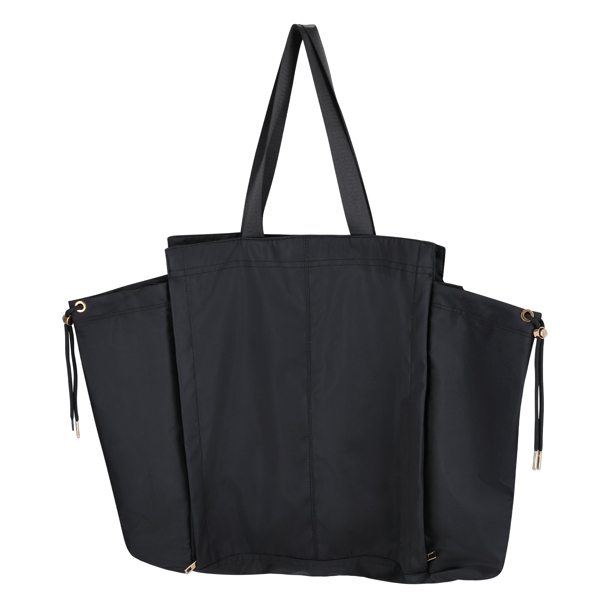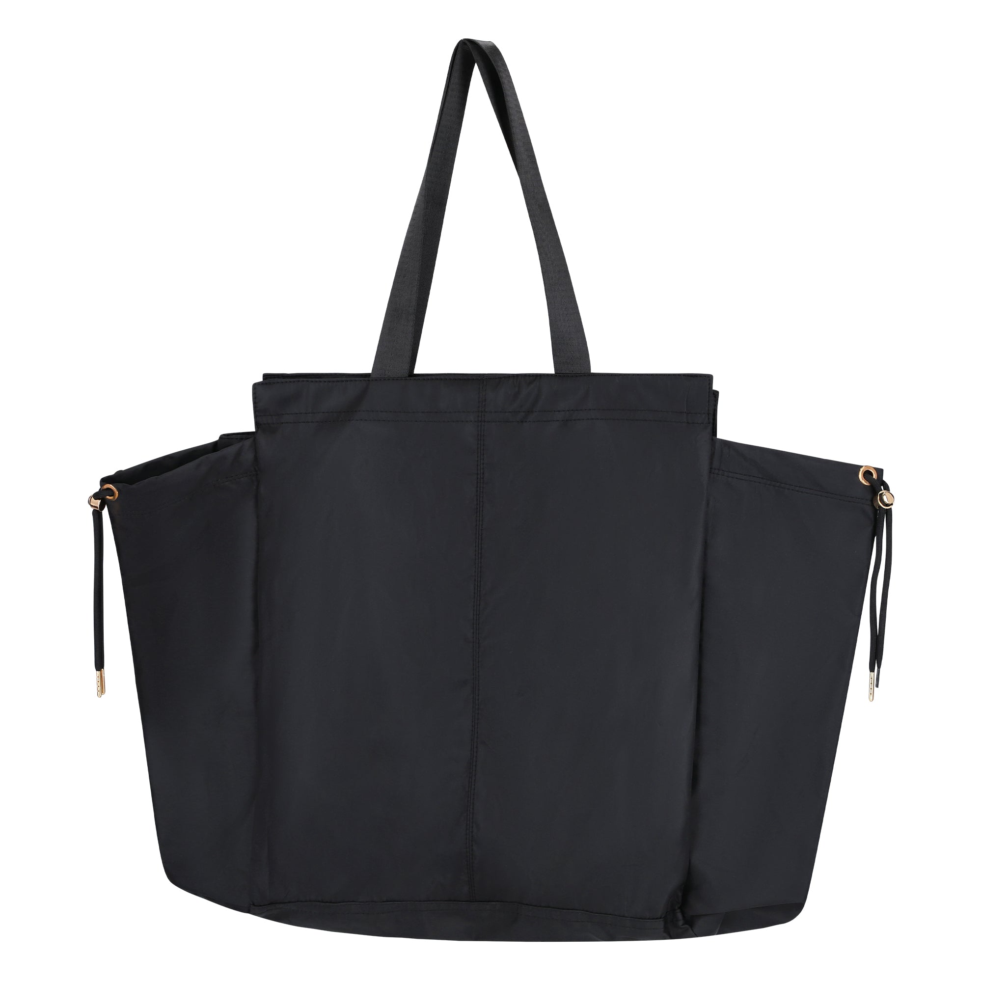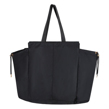 The large shoulder bag is made of sturdy polyester and is ideal for everyday use. You can even store a yoga mat in it. The bag can be closed quickly and easily with a magnetic closure. There is also an inside pocket for small items. The gold-coloured details emphasize your chic look.
