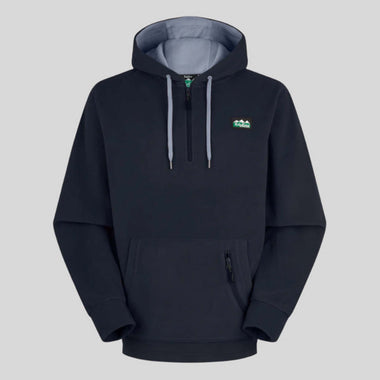 Lightweight, warm and highly breathable, it features a a 1/4 zip front and a large, double-thickness hood — thick “boot lace” ties cinch it in for extra cosiness.