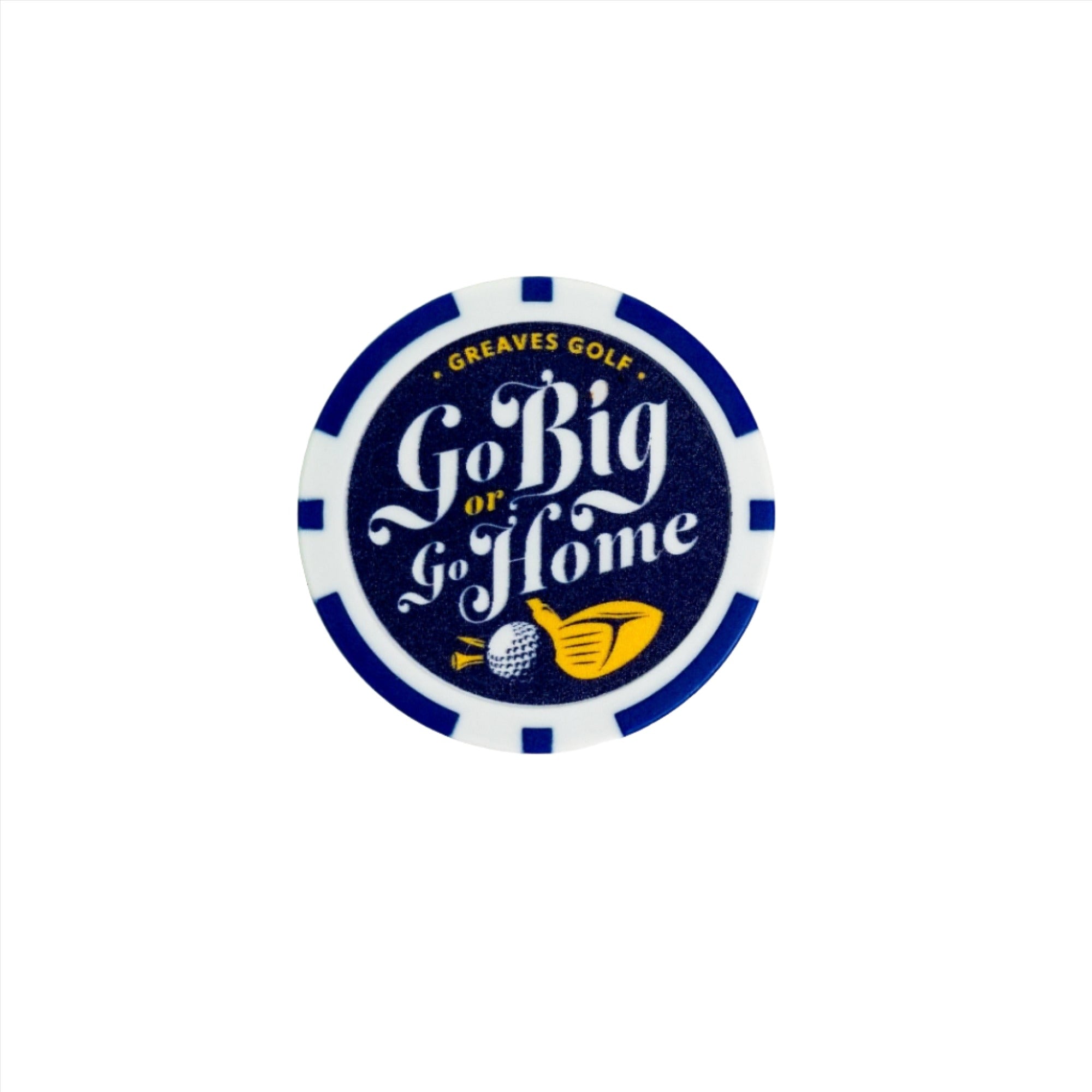 Expertly mark your spot on the golf course with our Go Big or Go Home golf ball marker. Inspired by Monaco poker chips, this marker is both stylish and functional. Show off your confidence on the green with our bold "Go big or go home" slogan.