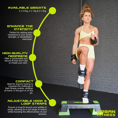 The Urban Fitness Neoprene Ankle/Wrist Weights are a versatile addition to any workout routine, designed to enhance the intensity of your exercises.