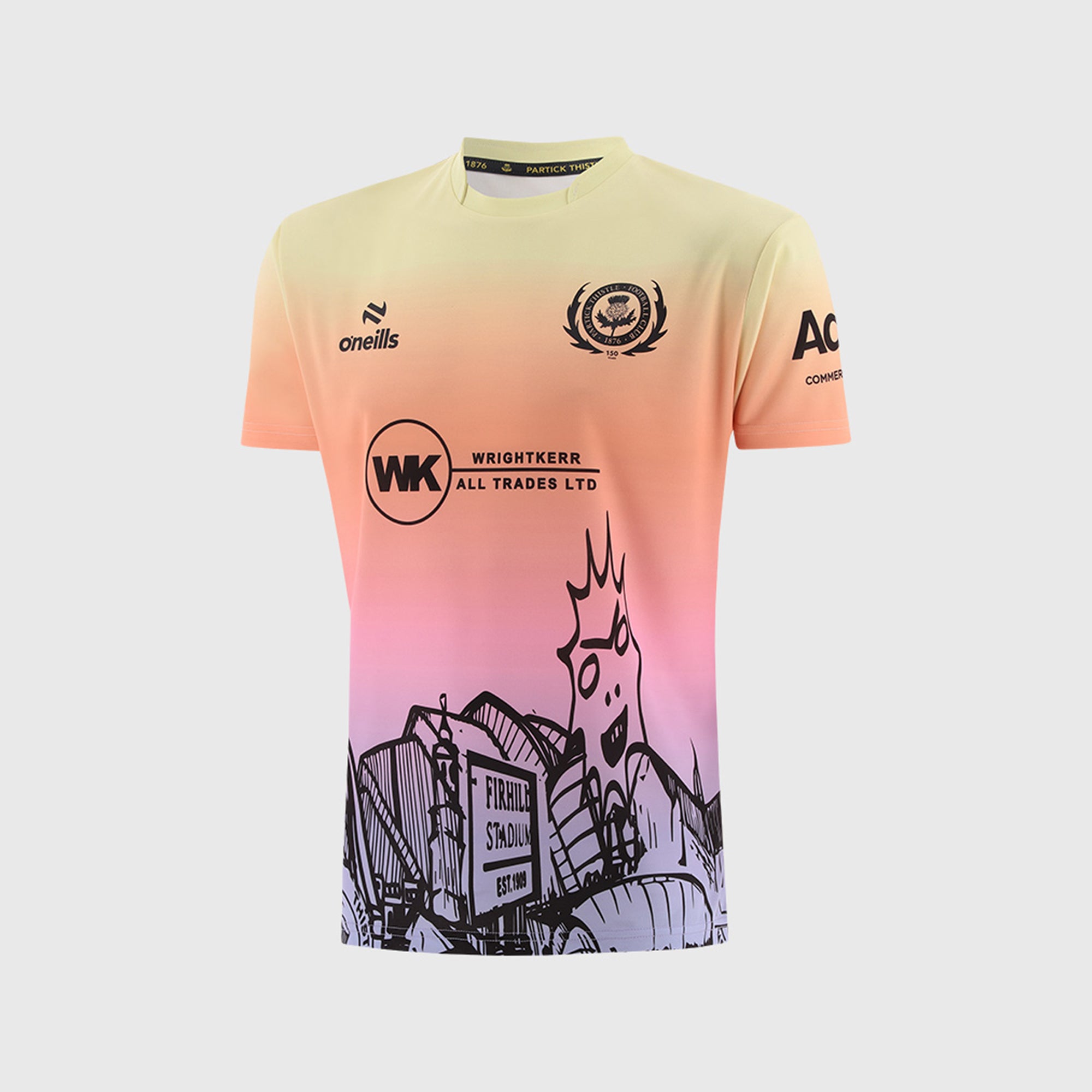 Celebrate your team spirit with the Partick Thistle 25/26 GK Kids Football Shirt, showcasing a lively multi-colour gradient inspired by Glasgow’s landmarks and the beloved Kingsley mascot.