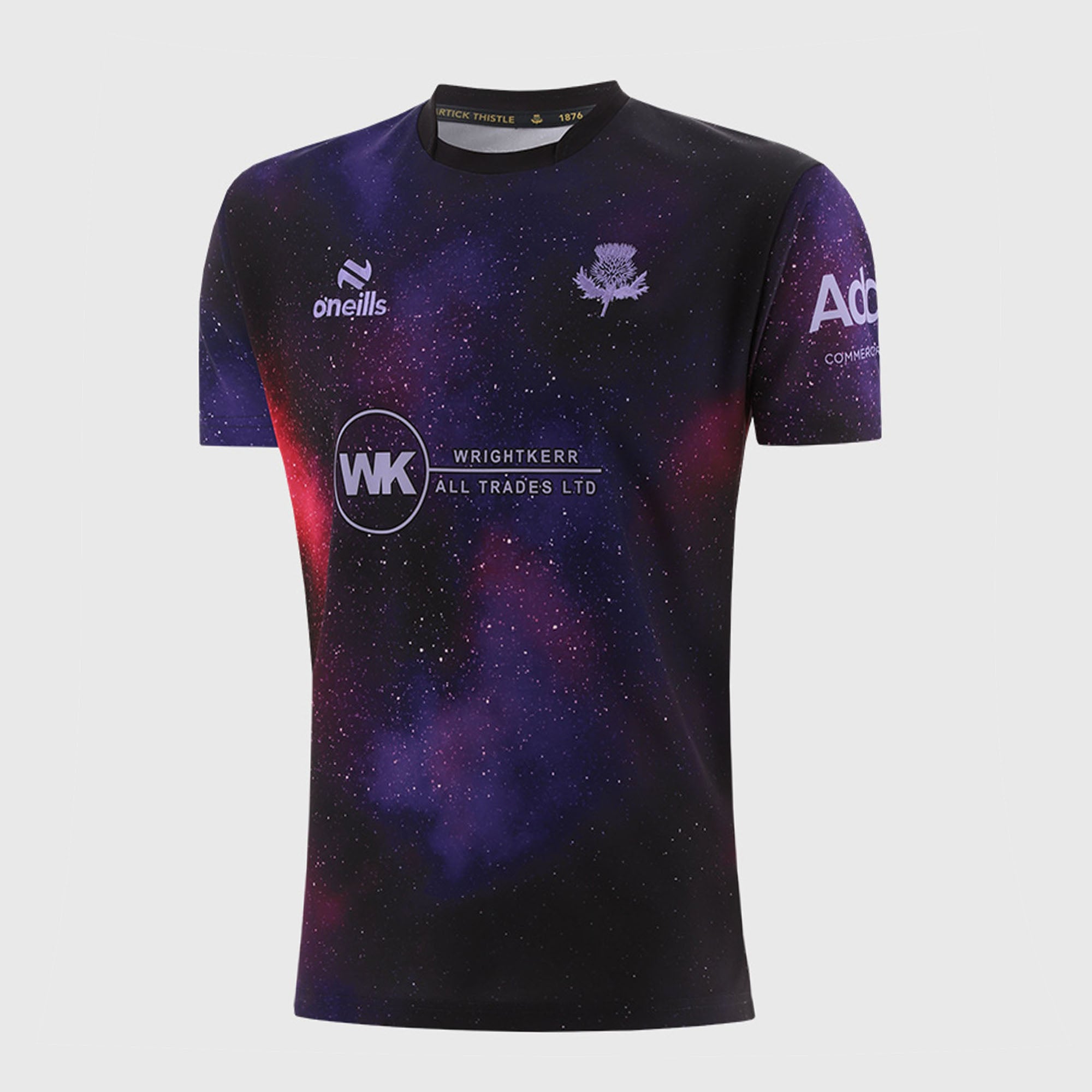 Show your support for Partick Thistle Women with this unique 25/26 goalkeeper shirt, designed in a striking Galaxy pattern. Crafted in a women's fit, it offers a comfortable and athletic silhouette perfect for fans and players alike. Stand out on and off the pitch with this exclusive design that combines style and team pride.