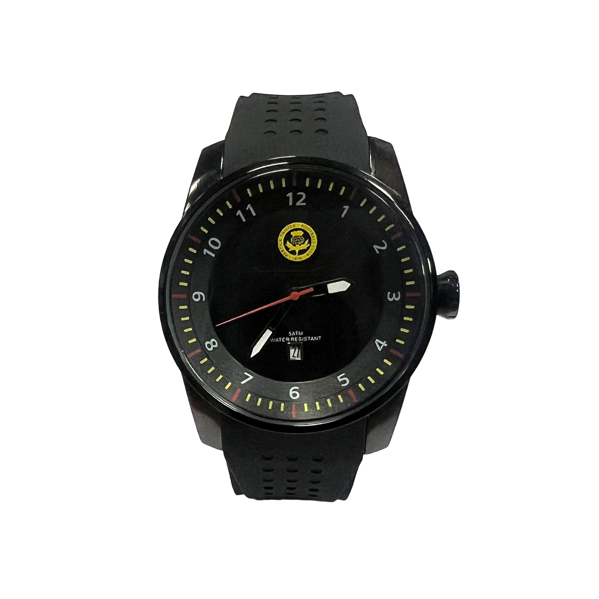Stay on time and on trend with the Partick Thistle Sports Watch. This sleek metal watch features a durable silicone strap for comfort and style.