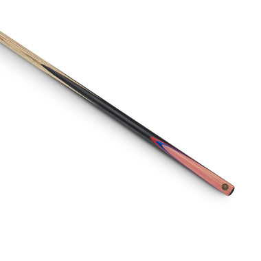 This 57” two piece cue is manufactured from sports grade Ash to offer superb value for money. The cue features a simulated hand spliced Ebony butt decorated a with decal of Tulipwood with Red & Blue veneers. The brass 'Cannon' joint is fitted in the centre of the cue.