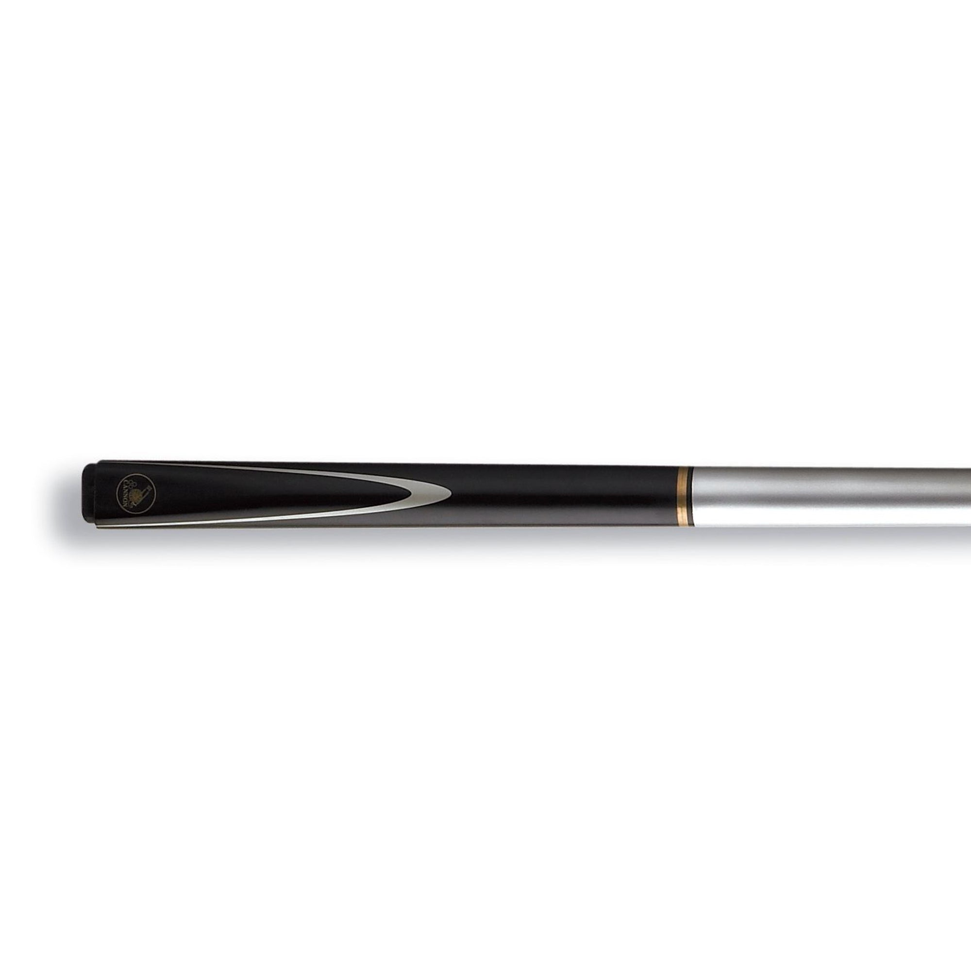 This 57” three section cue is manufactured from sports grade Ash offer superb value for money. The upper section of the butt has a metallic silver finish whilst the lower section is black with a burgundy silver veneer. The brass 'Cannon' joints are fitted in the centre of the cue and also 10” from the butt. This enables a player playing in a restricted space to remove the 10” section from the butt for the occasional awkward shot. The butt is finished with a Cannon disc decal and a protective rubber butt pad. For a 'screw on extension' to fit this cue please view the 'related products' section of this page. This cue features a solid brass ferrule and 9mm nominal Blue Chrome Leather tip.