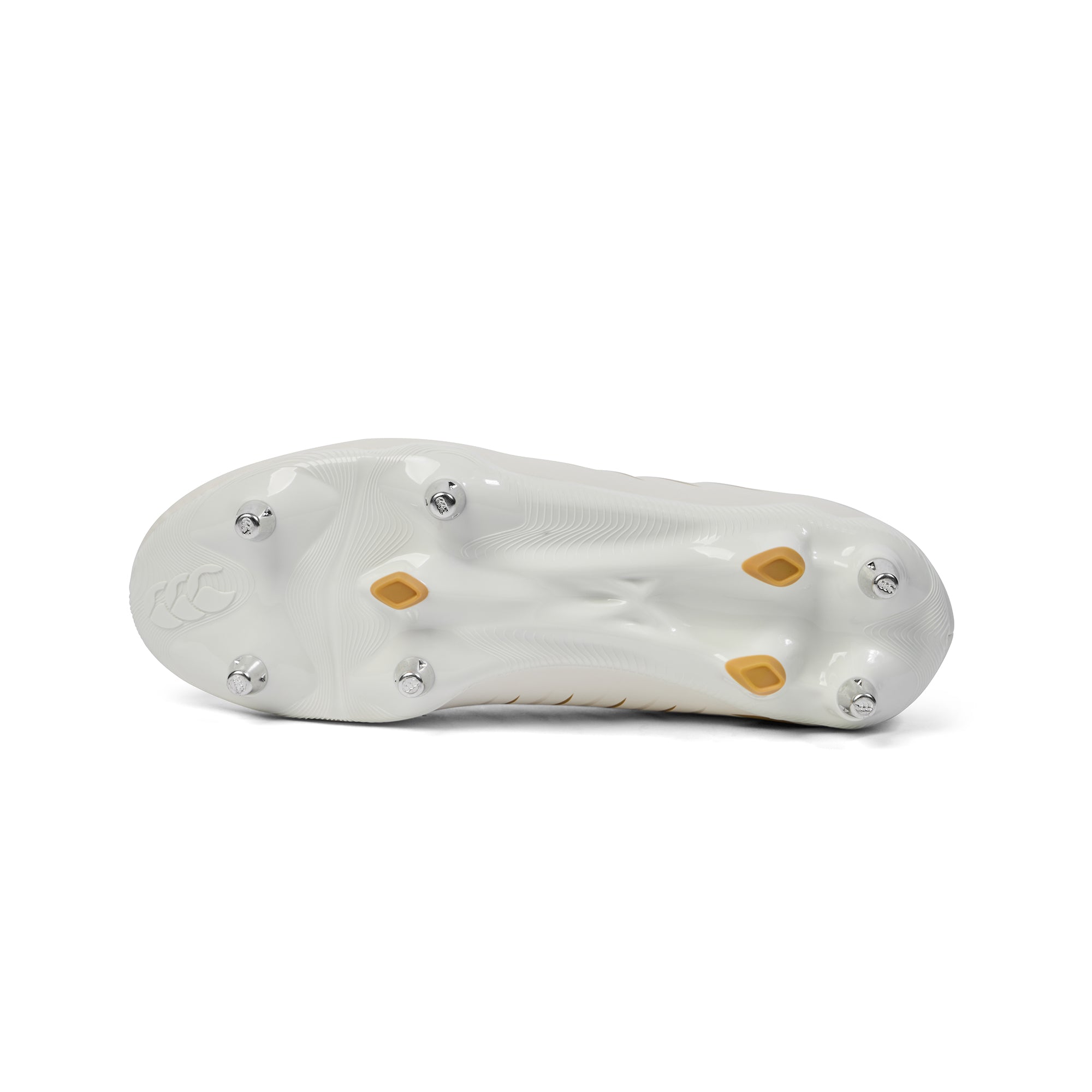 Rugby approved six metal studs combine with rhombus shaped moulded studs, for unrivalled traction.