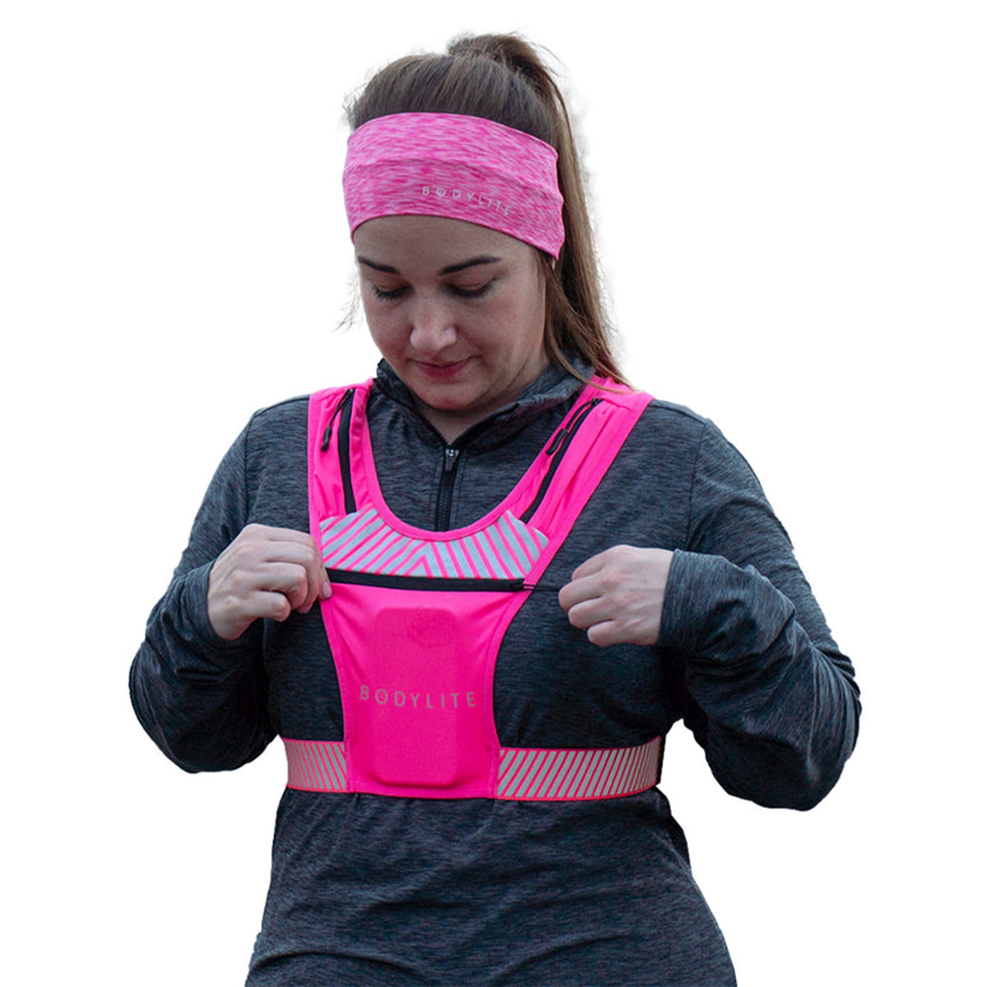 Introducing our Upgraded Bodylite Phone Holder Vest – designed to provide modern day functionality, comfort, and visibility during all sorts of workouts. This Fluorescent/Reflective vest is designed for those who need a reliable solution to securely carry their essentials, including your phone, while staying safe during the day & in low-light conditions.