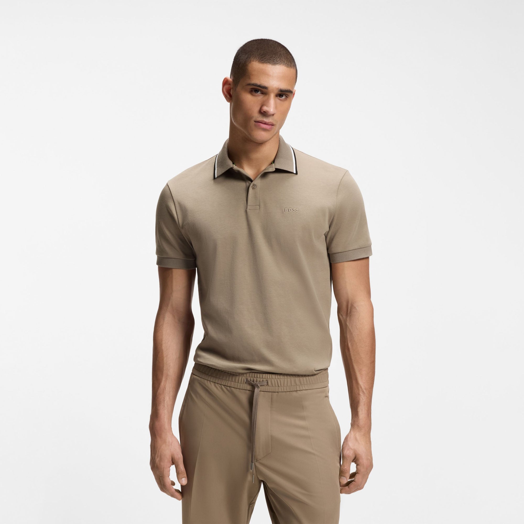Elevate everyday looks with the luxury cotton and contrast details of this slim-fitting BOSS Menswear polo shirt. Embroidered logo at the chest.