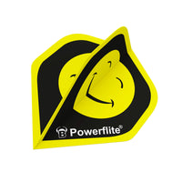 Upgrade your darts game with Powerflite Emoji Flights. These 100 micron flights feature a unique smiling emoji design in bold black and yellow colors. Made with strong material, they provide durability and stability for accurate and impressive throws. Perfect for adding a touch of personality to your darts collection.