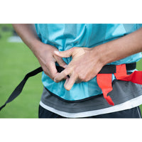 • The attacker tries to break away from the defender, during multi-directional quickness drills, by ripping the touch fastener tab on the umbilical between the two.