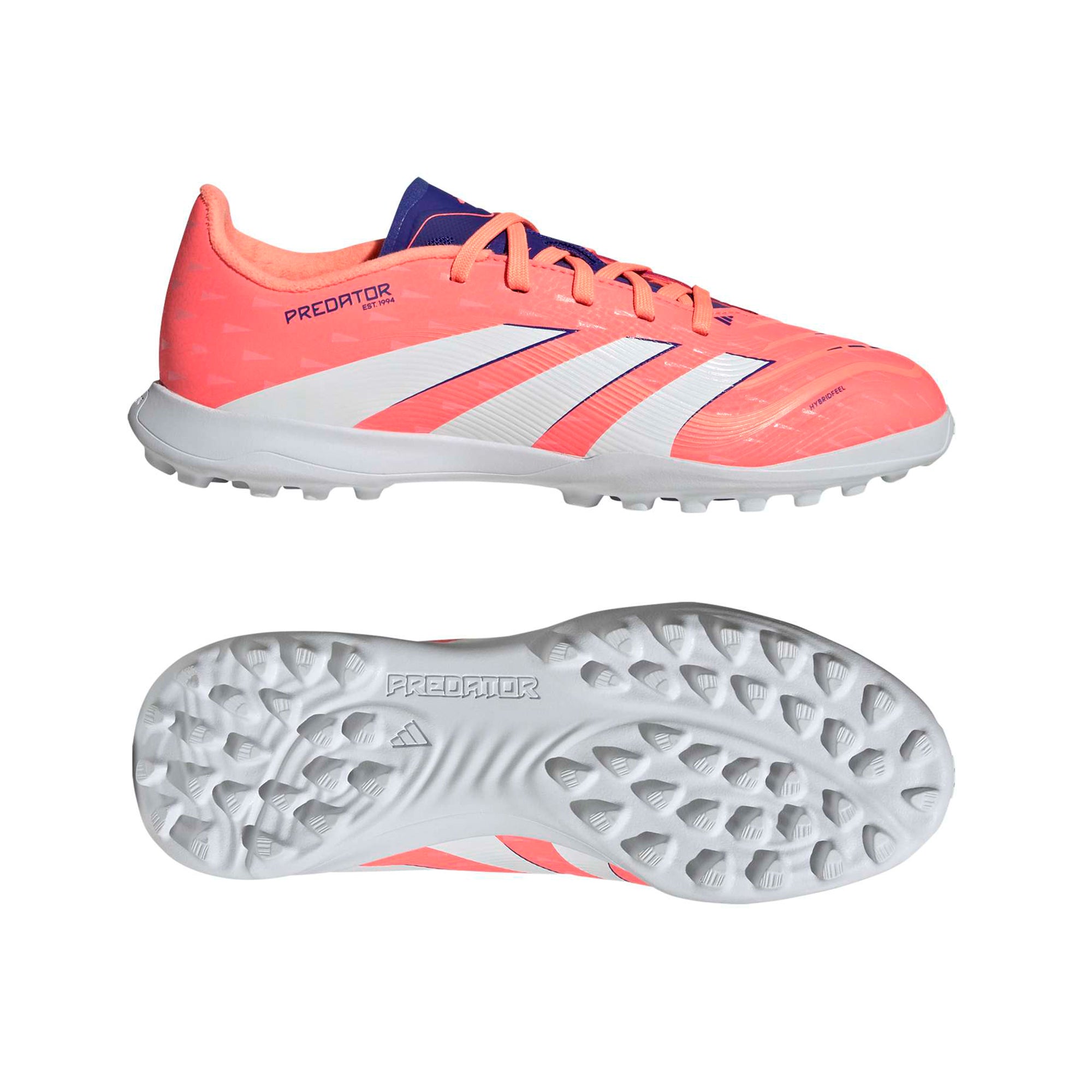 These juniors' League boots have a Hybridfeel upper that incorporates an all-over 3D texture and grippy Strikescale fins to help you manipulate the football during strikes. A lug rubber outsole keeps you stable on artificial turf pitches.