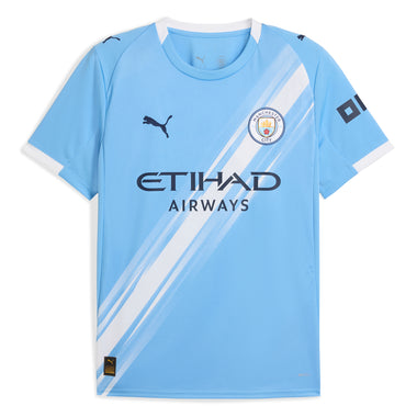 For the first time in club history, the home kit features the sash – the diagonal stripe design made iconic on away days. Paired with the unmistakable Sky Blue and reimagined for the next generation, it’s a connection to our past, a nod to our future, and a reminder that we do things differently here, on and off the pitch.