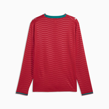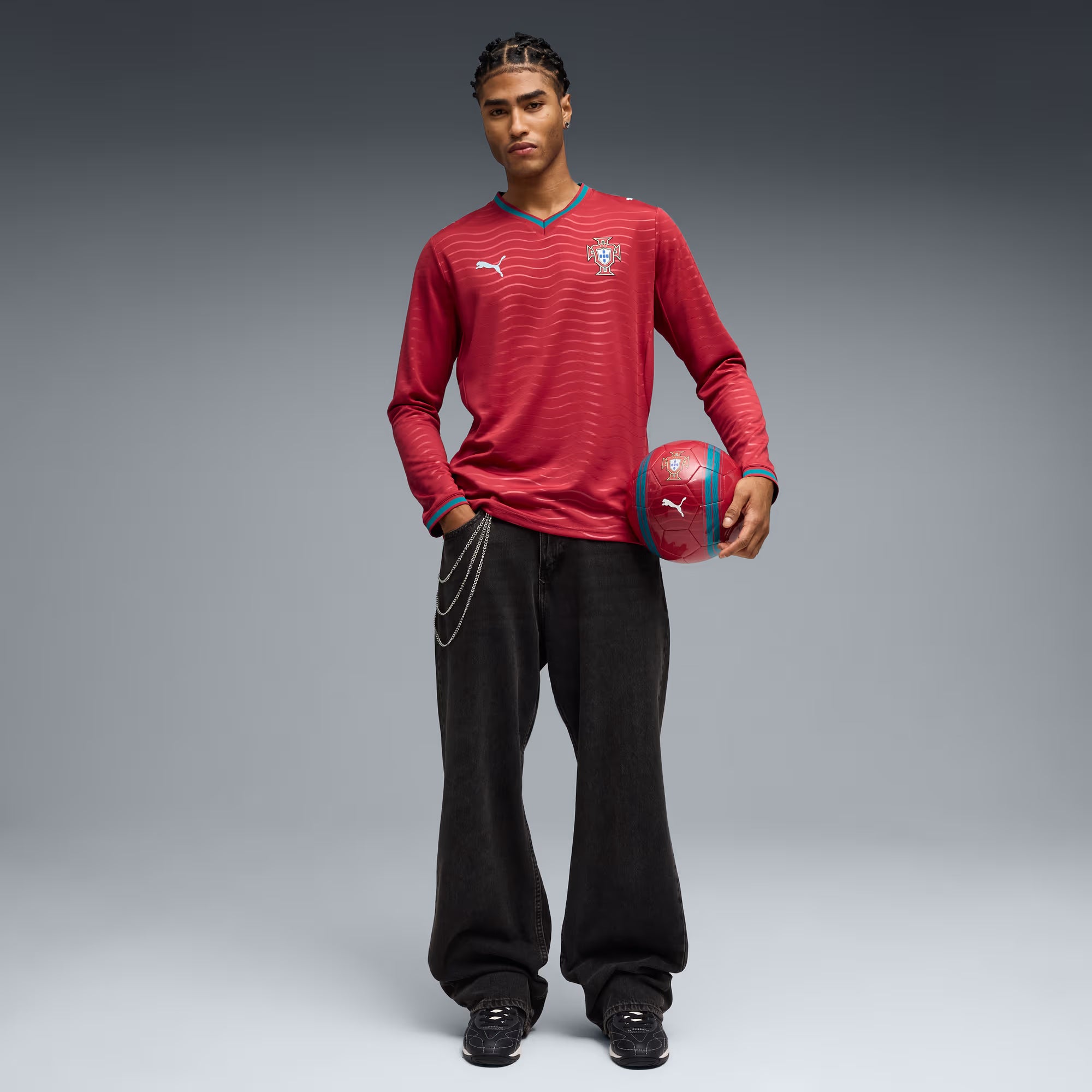 The iconic red base is layered with a wavy pattern and green accents, a nod to the country’s maritime roots and fearless spirit. It’s a design that speaks to those who were born to explore and live to play por amor à camisola. Designed for the fans, the long sleeve jersey pairs the same match-worn look with a casual silhouette, details, and materials, ideal for both game day and everyday wear.