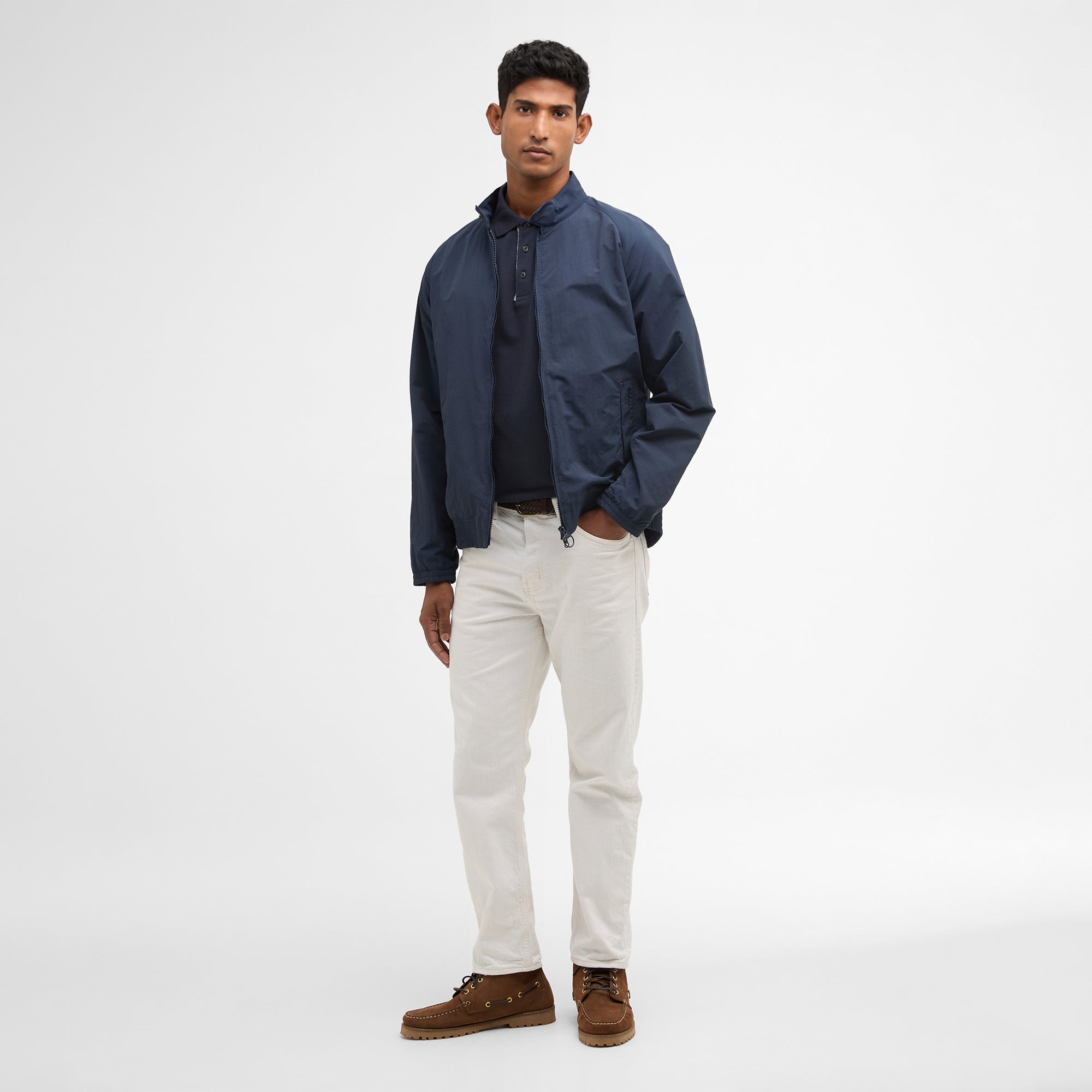 The Barbour Summer Royston Showeproof Jacket makes the perfect lightweight layer with a stand collar and zip front fastening. With an elasticated hem, inspired by a classic Harrington Jacket, it is finished with large welt pockets.