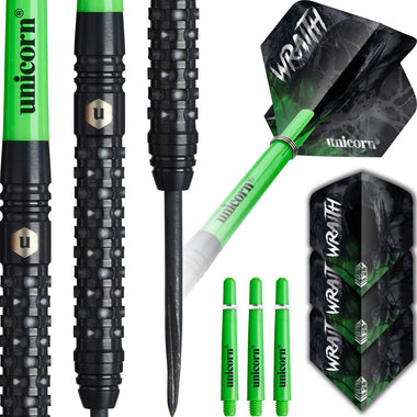 Without compromising on style, the Wraith unlocks new levels of control for competitive players seeking consistency in their throws during high-pressure moments. Its barrel construction comprises 90% tungsten alloy with an innovative complex milled grip design for extreme grip.Â
