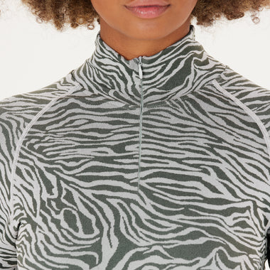 The mix of 61% nylon, 33% polyester and 6% elastane gives you great freedom of movement thanks to the 4-way stretch function. In addition to unbeatable comfort, the midlayer also scores with a trendy print look and environmentally friendly production!
